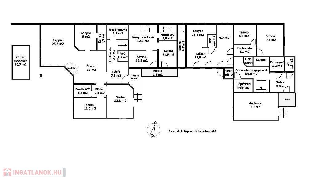 Eladásra kínálok a Balaton déli partján, Siófokon egy 269 m2 összes alapterületű, 2 db családi házat egy telken. Az ingatlan a Belvárosban, központi vegyes területen helyezkedik el. A telek területe 959 m2. A valamikor szebb napokat látott lakóingatlan felújítása után több generáció együttélésére alkalmas. Az utca felőli 116 m2-es lakóház komplett wellness egységgel rendelkezik (beltéri medence, gőzkabin, infra-finn szauna). Az épület részben alápincézett. A hátsó, 152 m2-es lakóház alagsorában egy 44 m2-es dupla garázs is helyet kapott. Ehhez a lakóházhoz a hátsó kertben kültéri medence épült. Az ingatlannak jelenleg nincs fűtése. Az elektromos áram és a gáz ki van építve a lakóházakban, a mérőórák leszerelésre kerültek, ezek újbóli igénylése, kiépítése az új tulajdonos feladata lesz. A Balaton-part, siófoki Nagystrand 500 méter, a városközpont 600 méter távolságban van. Megtekintésért várom megtisztelő hívását!