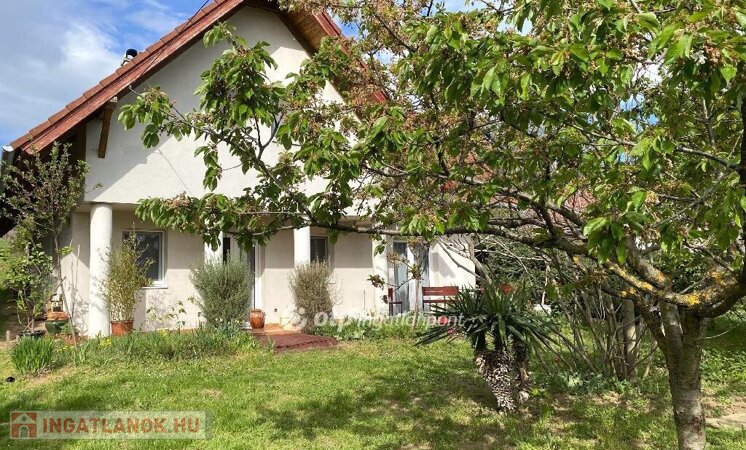 Zamárdi-Kóhegyen nyaralónak, állandó otthonnak, kereskedelmi szálláshelynek egyaránt tökéletesen alkalmas kiváló állapotú két lakrészes ház eladó 2500 m2-es hangulatos, intim telken. Az épület két lakása külön bejáraton megközelíthető, így két generáció együttélésére, nyaralására, vagy kiadásra ideális. 3 évre érvényes 2 csillagos szálláshely minősítéssel rendelkezik, mely átruházható az új tulajdonosra. A földszinti épületrész 2008-ban épült, a tetőráépítés 2019-ben készült el. Az eredetileg is nagy igényességgel megépített ház minden elemében gondosan karbantartott, kiváló állapotú. Műszaki tartalom: 38-as Porotherm tégla, 5 cm hőszigeteléssel, 15 cm tetőszigeteléssel, Hofstadter nyílászárók szúnyoghálóval. A fűtést 2 kályha és egy klíma adja jelenleg, de megtörtént a radiátorok és a padlófűtés előkészítése is. A melegvizet bojlerek szolgáltatják. A földszinti, keleti fekvésű lakrészben egy hálószoba kapott helyet és egy közel 40 m2-es amerikai konyhás nappali terasz-, és pince kapcsolattal. Még egy szoba kialakítására igény esetén van lehetőség. A tetőtéri nyugati fekvésű lakrésznek egy 27 m2-es amerikai konyhás nappalija és három hálószobája van. A kertben szilva-, meggy-, cseresznye, alma-,barack-, mandula- diófák, szőlő, dísznövények és a kiváló állapotú boltíves borospince emelik tovább az ingatlan értékét. Minden részletében hamisítatlan kő-hegyi hangulat. Az ingatlan aszfaltos úton megközelíthető. A Balaton-part (Zamárdi szabadstrand) távolsága 1,5 km. Megtekintésért kérem, hívjon!