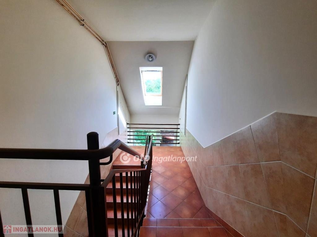 A helyiségeket minőségi burkolatok jellemzik: a hálószobákban laminált parketta, míg a többi helyiségben feszültségmentesítő réteggel ellátott kerámialap található. A tetőtéri ablakokon napelemes, távirányítós redőnyök biztosítják az árnyékolást, a műanyag nyílászárók pedig redőnnyel és szúnyoghálóval felszereltek. A lakás esztétikailag és műszakilag is kiváló állapotban van: új, falba süllyesztett vezetékek, energiatakarékos LED világítás, üvegszálas tapéta, beépített Geberit WC, valamint riasztórendszer távfelügyeleti csatlakozással garantálják a modern kényelmet. A lakáshoz kocsibeálló tartozik.