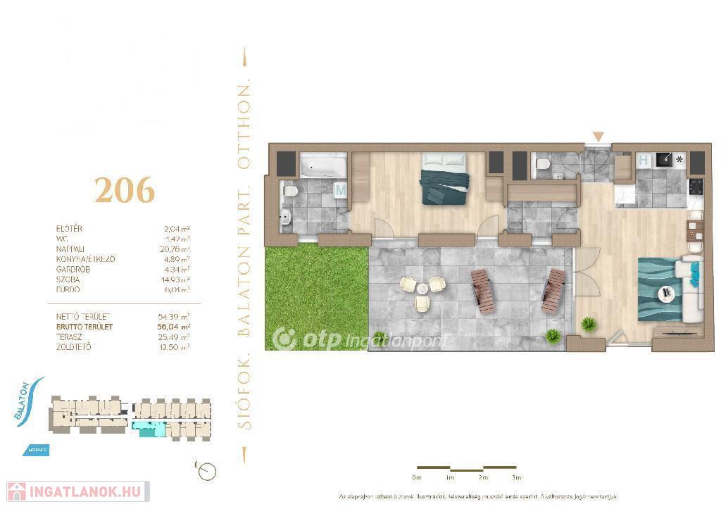 A 2.emelet 206-os lakás helyiségei részletesen: