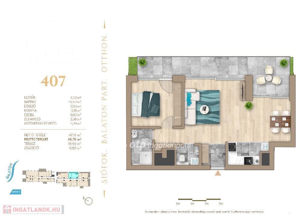 Siófok a déli part központja, 1 órányi autótávolságra Budapesttől. A parti sétányon elhelyezkedő lakás kiváló lokációval rendelkezik a közelben számtalan kikapcsolódási lehetősséggel még is távol a város zajától. 1 perc séta távolságra az Ezüstpart Yacht kikötő. A 69 lakásos projektben minden lakáshoz erkély tartozik, a fölszinten pedig saját kertek.