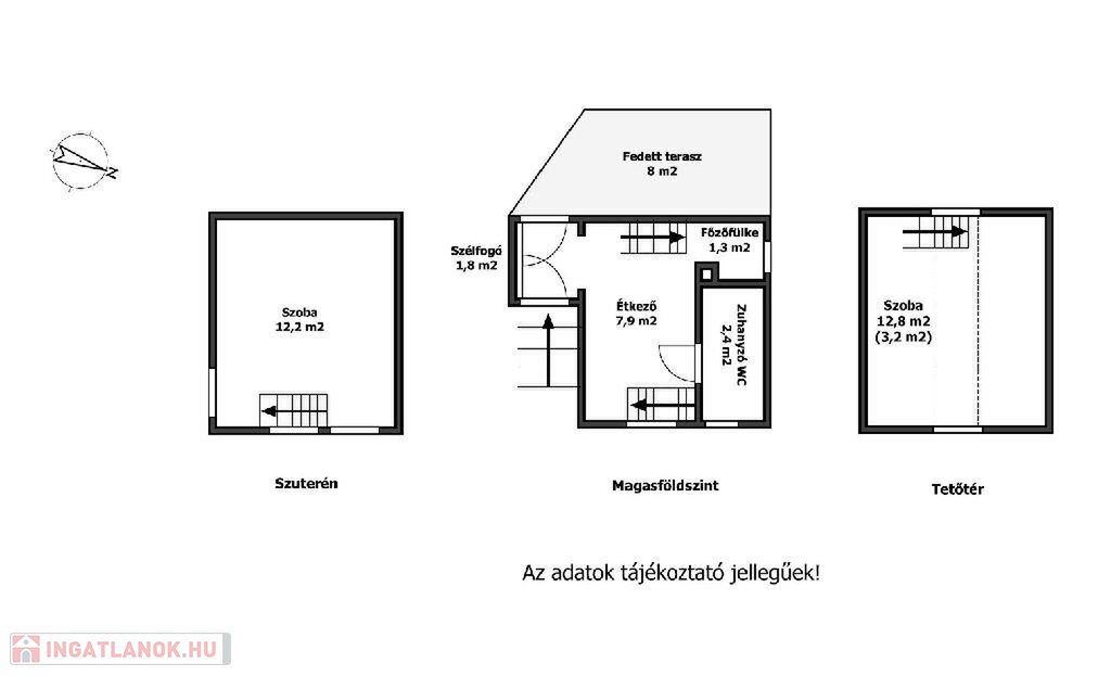 Az épületben 2 szoba található, egy a szuterén szinten és egy a tetőtérben, 4 fő kényelmes pihenésére ideális. Az épülethez nagy fedett terasz kapcsolódik.